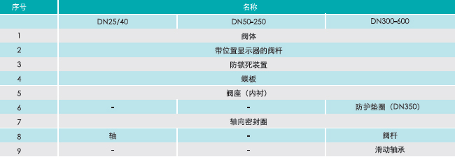 結(jié)構(gòu): 模塊化結(jié)構(gòu) 安裝長(zhǎng)度符合ISO5752/20標(biāo)準(zhǔn) 通過(guò)多樣的材料選擇實(shí)現(xiàn)通用性 頂端平臺(tái)連接符合ISO5211標(biāo)準(zhǔn) 泄漏測(cè)試標(biāo)準(zhǔn)有EN 12266-1/P12 泄露率A 蝶閥安全要求遵循歐洲壓力設(shè)備97/23/EC管理?xiàng)l例 密封件采用特殊的幾何形狀設(shè)計(jì),可滿(mǎn)足更大通徑閥門(mén)的安全密封性 優(yōu)點(diǎn): 扭矩小 安裝方便 連接方式多樣 溫度和壓力范圍廣 全面符合最新國(guó)際規(guī)范 更多的適用規(guī)格和更高的性?xún)r(jià)比 技術(shù)參數(shù): 閥類(lèi): 襯膠蝶閥 閥體材質(zhì): GGG40 工作壓力: 0-16 bar 最高工作溫度℃: 150 ° C 通徑范圍DN : 25-600